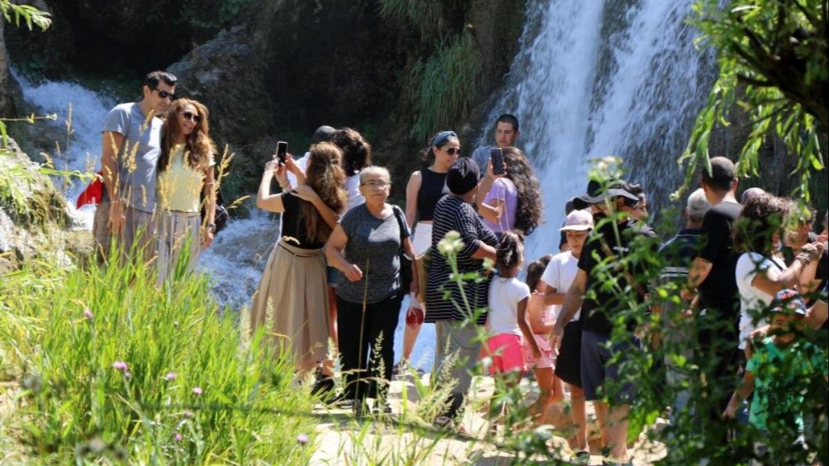 Kentte termometrelerin 40 metreyi göstermesinin ardından, yaz ve hafta sonu tatilini fırsat bilen vatandaşlar şelaleye akın etti.