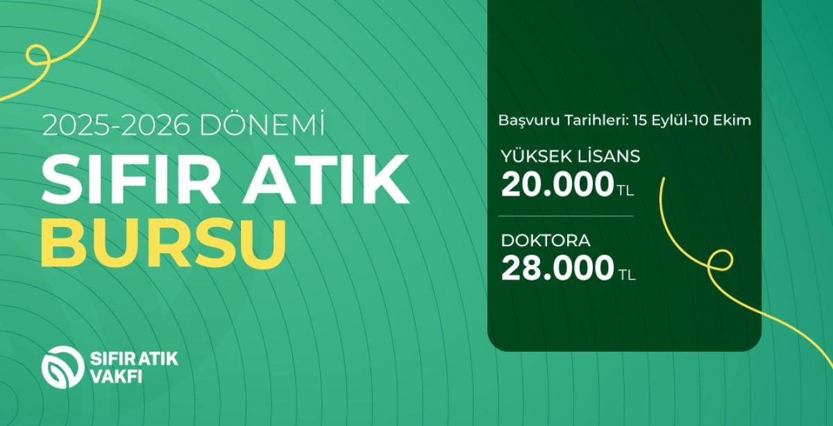 - Sıfır Atık Vakfı, 2025-2026 döneminde çevre bilincini artırmak amacıyla tezli yüksek lisans ve doktora öğrencilerine burs programı başlatıyor.