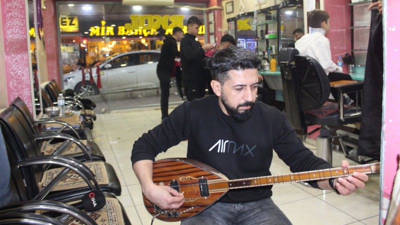 Müşterileri Ramazan Özbey ise tıraşa ne zaman gelirse berberin sazını eline alıp çaldığını dile getirdi.