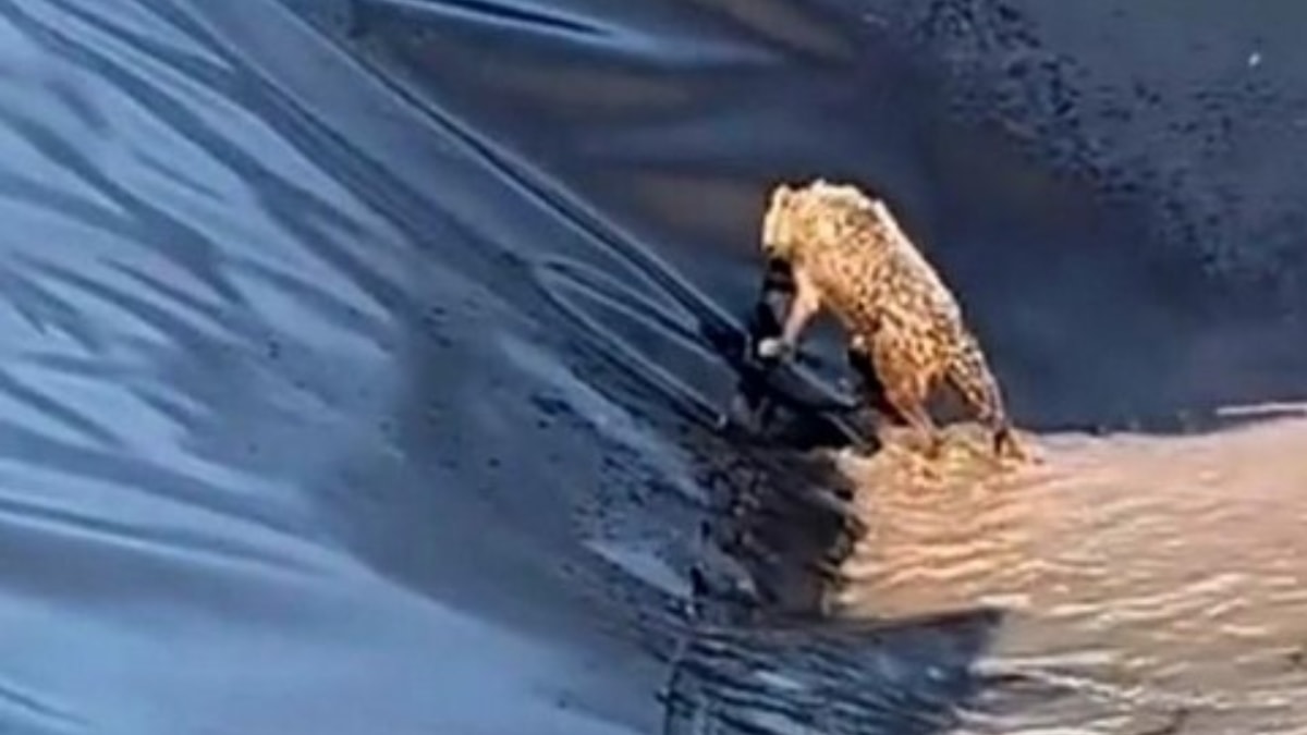 Durumu fark eden bölgede çalışan işçiler, kurdun havuzdan çıkmak için verdiği mücadeleyi cep telefonu kameralarıyla kaydetti. Görüntülerde, kurdun panik halinde havuz kenarlarına tırmanmaya çalıştığı anlar yer aldı.