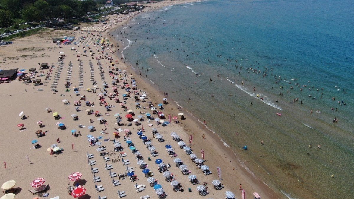 Sahilin yanı sıra ailece piknik yapanların da bulunduğu Şile’deki tatilci yoğunluğu havadan da görüntülendi.