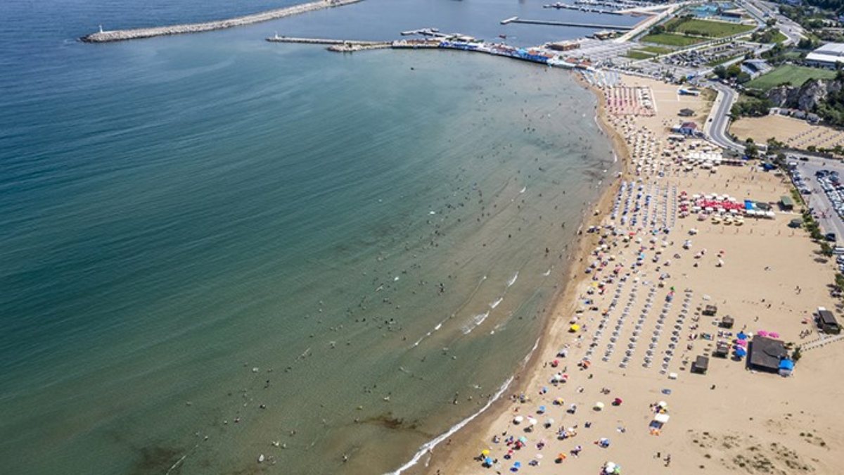 Plajın etrafına şerit çekilerek vatandaşlar deniz kenarından uzaklaştırıldı.
