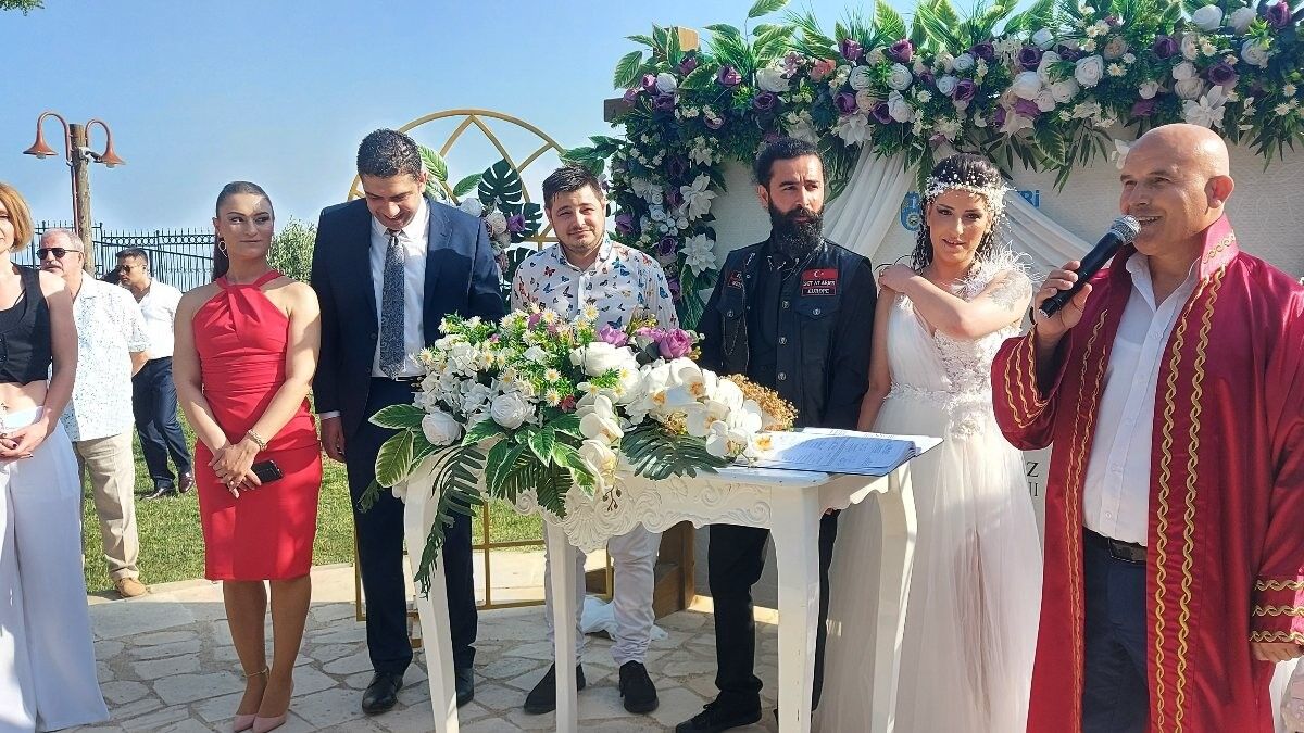 Kale Park Sosyal Tesisleri'nde düzenlenen nikah törenine kendi motosikletleri ile gelen genç çift, “İkimiz de motosikleti çok seviyoruz, ikimizi yansıtıyor. Bu yüzden kendimizi yansıtan bir şekilde gelmek istedik. İki teker herkesin bildiği gibi bir tutku, vazgeçilmiyor” dedi.