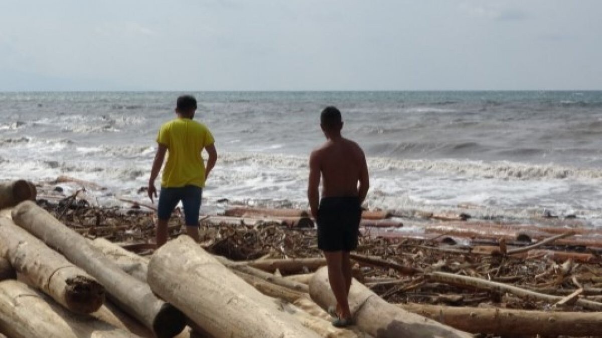 Sinop'un Erfelek ilçesine bağlı İncirpınar sahili, sel afeti sonrası tomruklarla kaplandı. Buraya gelen gençler de tomrukların arasındaki odunları toplamaya başladı.
