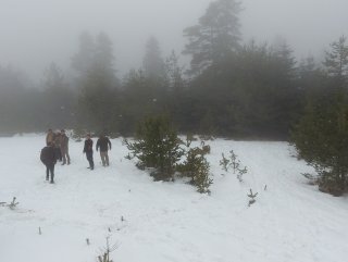 Bu kapsamda Sinop'un karla kaplı yüksek tepelerinden biri olan 1.300 rakımlı Soğuksu mevkisinde yaşayan yabani canlıların aç kalmamaları amacıyla yiyecek bırakıldı.