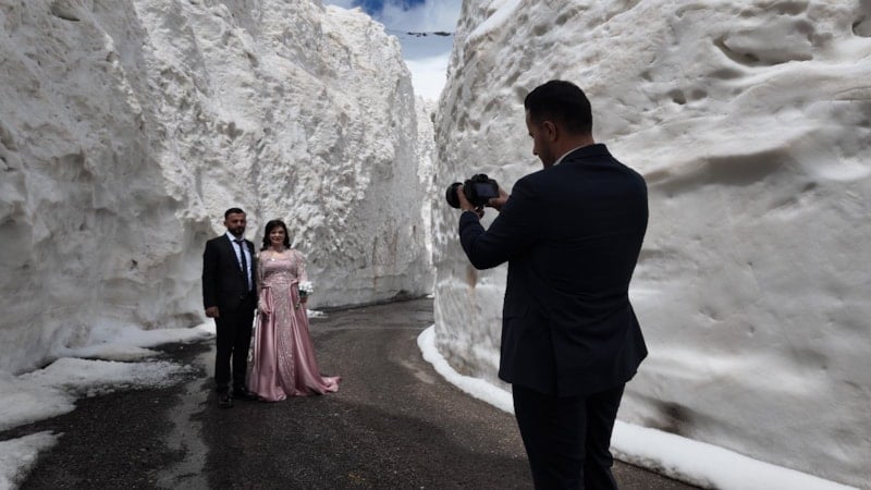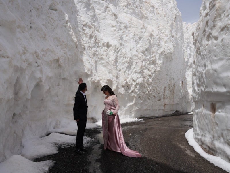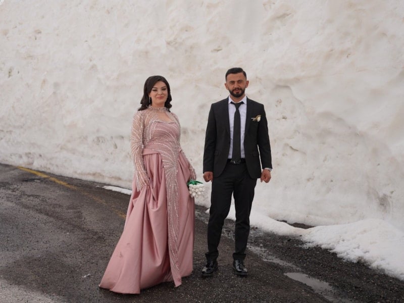 Fotoğraf için çekim platosuna gitmeleri gereken gelin ve damat adayı, Tanin Geçidi'ndeki bölgede düşen çığ sonrasında açılan tünellerde çekim yapmayı tercih etti.