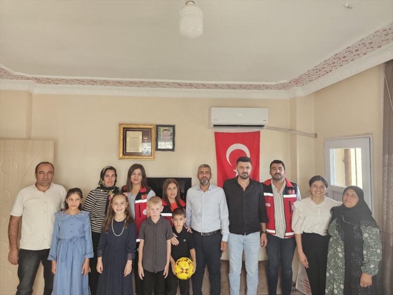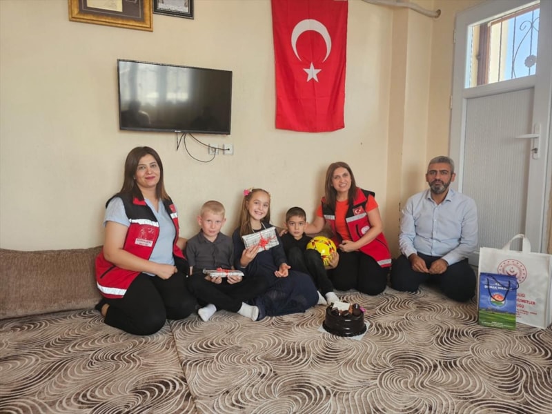 Şehidin ailesinin yaşadığı evi ziyaret eden Aile ve Sosyal Hizmetler İl Müdürlüğü ekipleri, hazırladıkları doğum günü pastasına mumlar yerleştirdi.