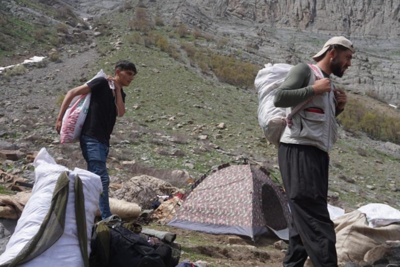 Zorlu yolculuk 2 gün sürerken, 6 kilometre boyunca atların sırtında dağa çıkan köylüler, kamp kurup geceyi dağlarda geçiriyor.