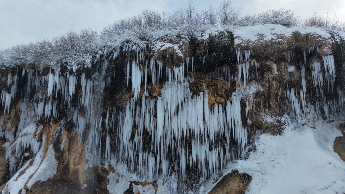 Hava sıcaklığının sıfırın altında 10 derecelere kadar düşmesiyle suyun döküldüğü bölümlerde oluşan buz sarkıtları dikkat çekti.