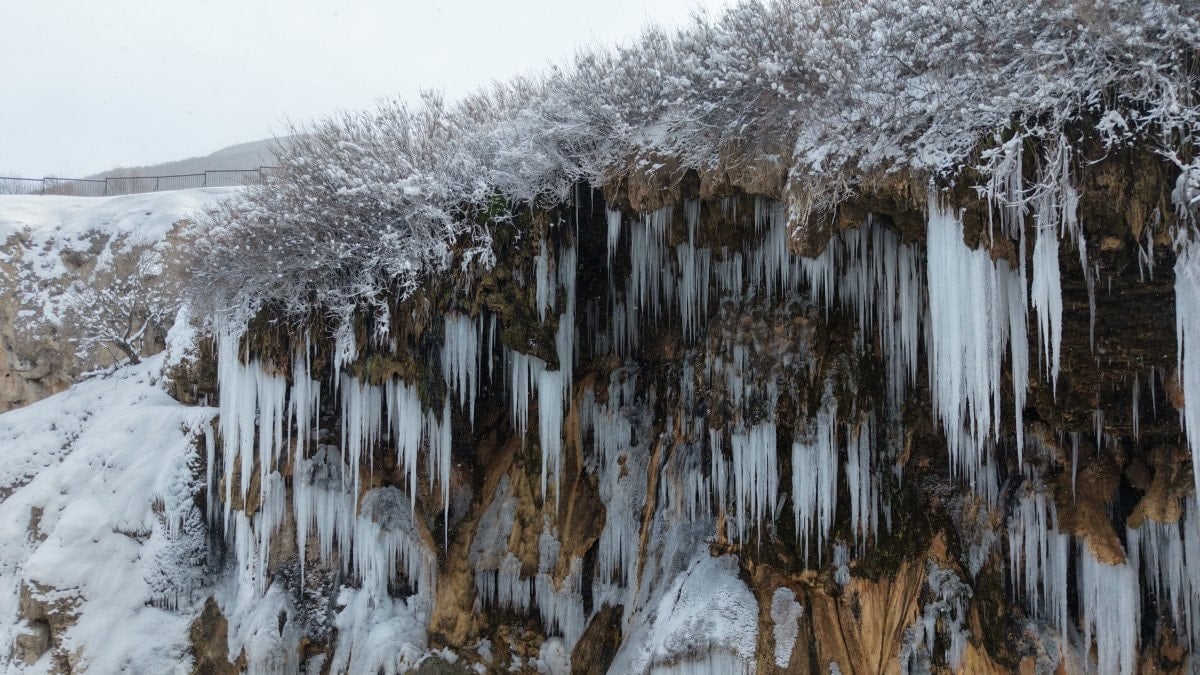 - Hava sıcaklığının düşmesiyle suyun döküldüğü bölümlerde buz sarkıtları dikkat çekiyor.