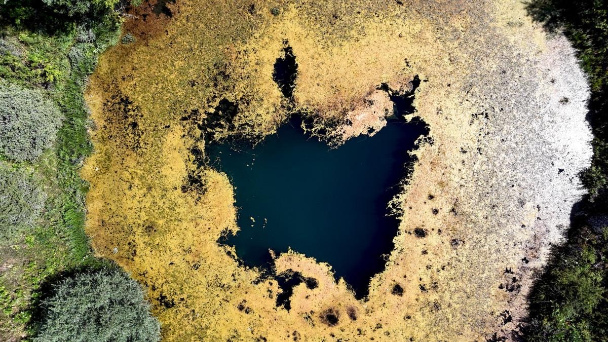 Sivas'ın Doğanşar ilçesinde yer alan Dipsizgöl, yüzeyini kaplayan yosunlarla adeta timsah gözünü andırıyor.