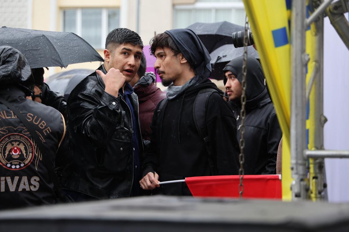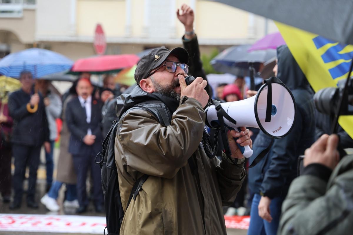 Emekçinin, işçinin bu günü, bu tip insanlar yüzünden leke yiyor. Ben yağmurun altında işçinin alın terini savunmak için geldim. Burası Türkiye Cumhuriyeti toprakları, bu topraklarda Türkiye Cumhuriyeti'nin adını değiştirecek adamın alnını karışlarız." dedi.