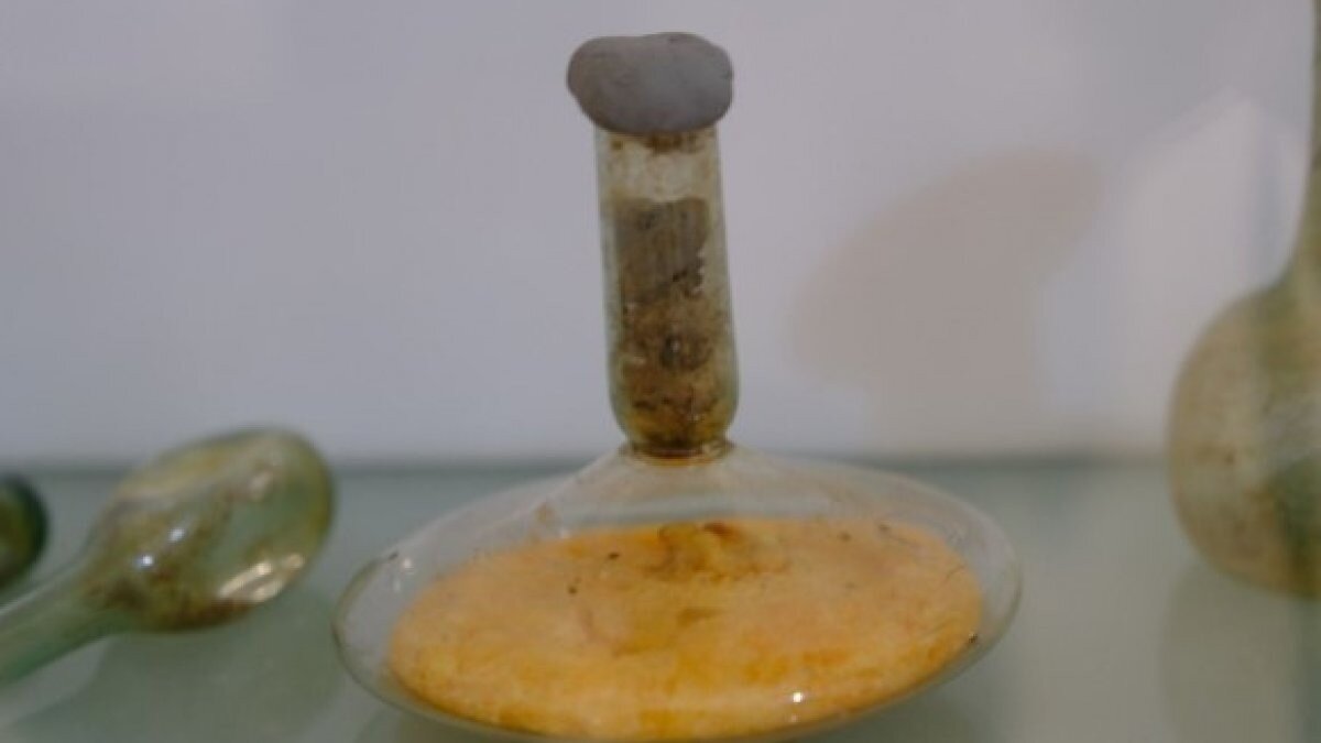 Yapılan inceleme sonucunda M.S. 3 ve 4'üncü yüzyıllara ait olduğu değerlendirilen cam fanusun içindeki sıvının zeytinyağı olduğu ortaya çıktı.