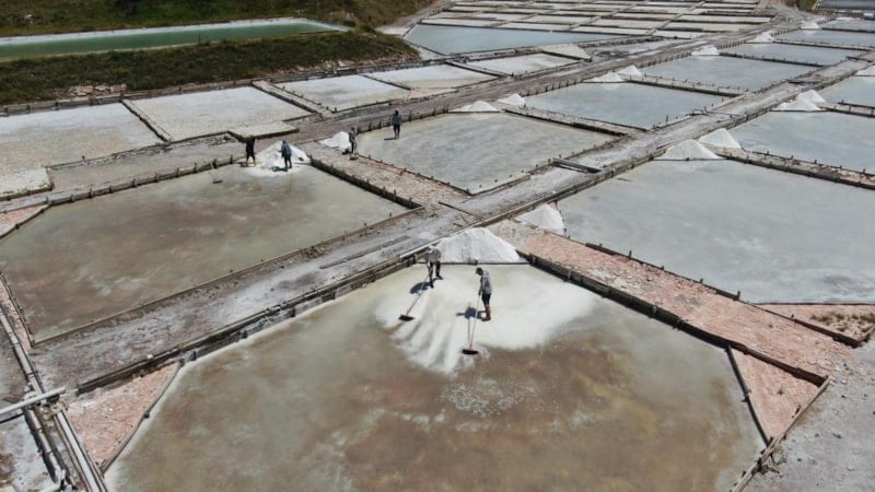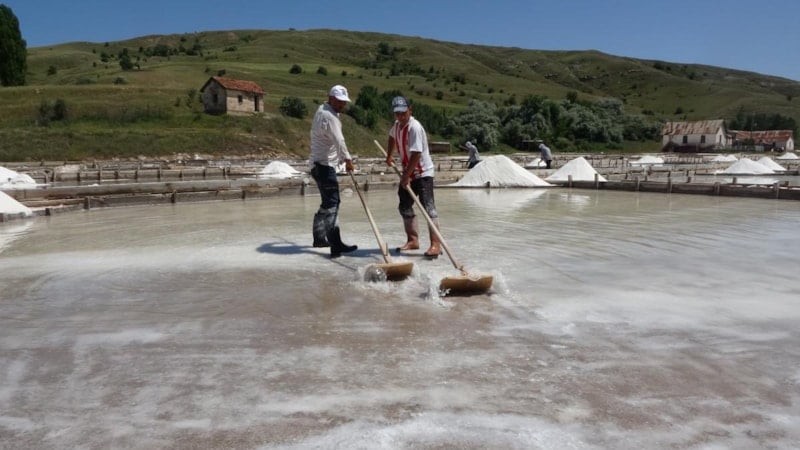 Tuz, yer altından çıkan tuzlu kaynak suyunun yüzeye taşınarak yaklaşık 100 havuzda bekletilmesiyle üretiliyor.