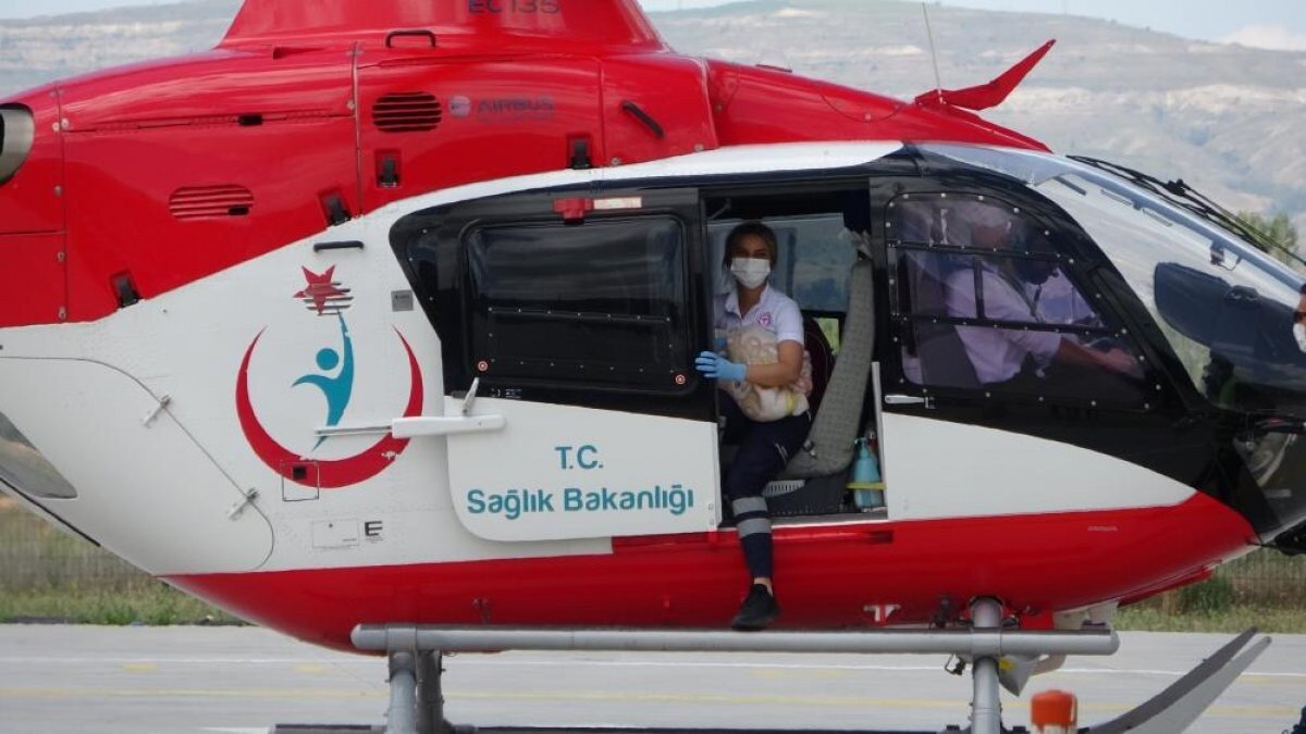 Ambulans helikopter bebeğin nakli için Sivas'ın Koyulhisar ilçesine gitti.