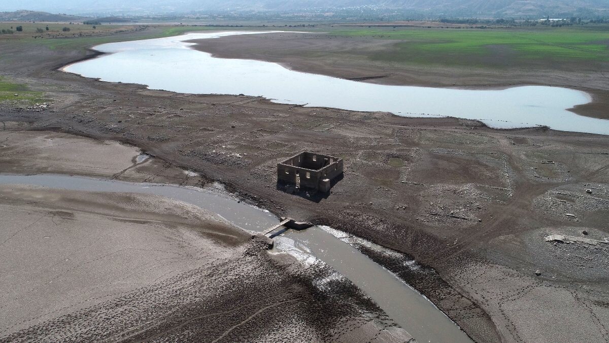 Sivas'ın Suşehri ilçesindeki Kılıçkaya Barajı'nda suyun çekilmesiyle eski yerleşim yerlerinden kalıntılar gün yüzüne çıktı.