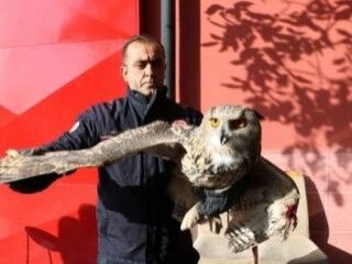 Sivas kent merkezi Seyrantepe Mahallesi Cami Sokak'ta evine balkondan giren dev baykuşu yakalamakta güçlük çeken Özdem Tok, durumu itfaiye ekiplerine bildirdi.