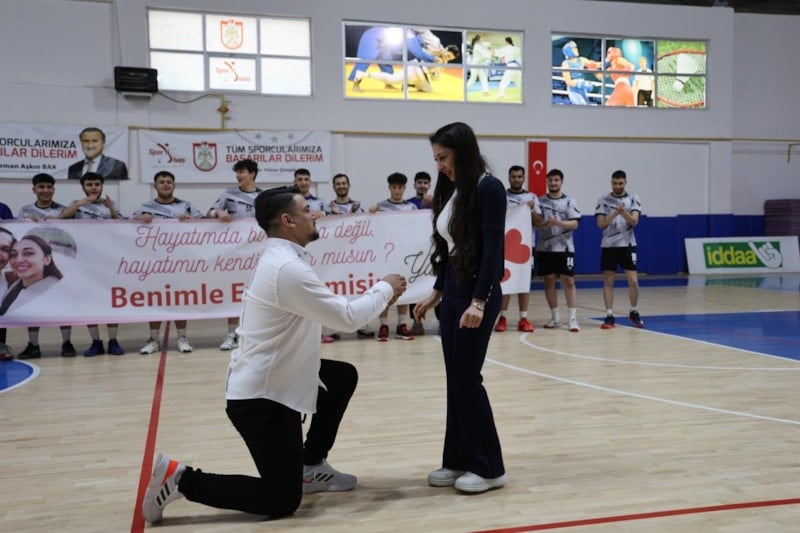 Türkiye Hentbol Erkekler 1. Ligi'nde Sivas Gençlik Spor Kulübü ile Giresunspor arasındaki mücadele, sadece heyecanlı bir spor karşılaşması olarak değil, aynı zamanda unutulmaz bir sürprize de ev sahipliği yaptı. Maç sırasında, Sivas Gençlik Spor Kulübü yardımcı antrenörü Kürşat Eryıldız (24), basketbol antrenörü sevgilisi Yaren Kuzucu'ya (24) evlenme teklif etti.