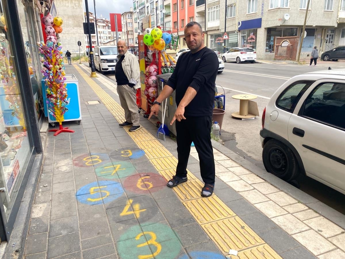 Sivas'ta 12 yıldır esnaflık yapan Mesut Yazıcı, iş yerinin önüne çizdiği seksek oyunu ile caddeden geçen çocuklara, gençlere ve yaşlılara eğlenceli bir alan sundu.