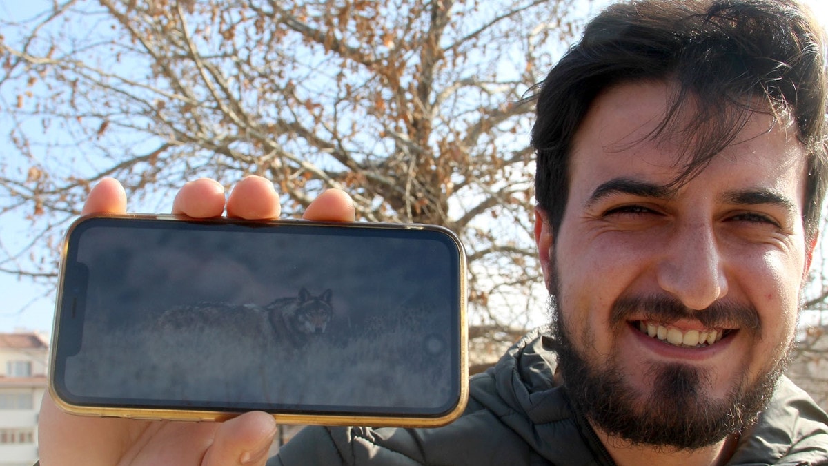 Arazide gezdiği sırada bir anda karşısına çıkan kurt ile 30 saniye göz göze gelen Arslan, kurdun fotoğrafını çekmeyi başardı.