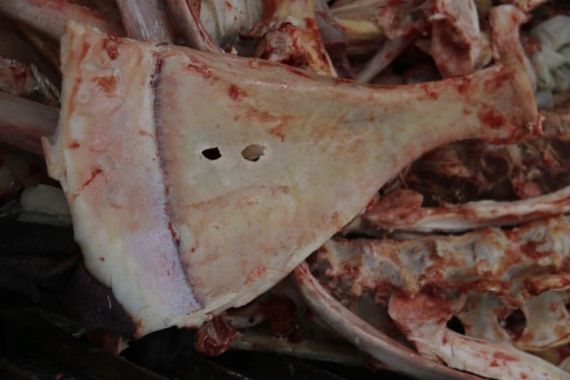 Küçükbaş hayvanlarda 240 farklı kemik arasından sağ ve sol kürek kemiği olmak üzere 2 tane bulunan bu kemik, kasapların yaptığı bu uygulamayla beraber kötü amaçlı kullanılmadan imha ediliyor.