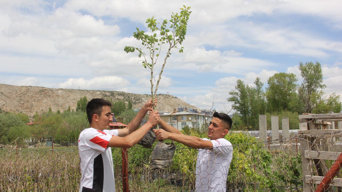 Sivas'ın Zara ilçesine bağlı Tödürge köyünde vefat eden babası için hayır yapmak isteyen oğul Önder, meyve ağaçları aldı.