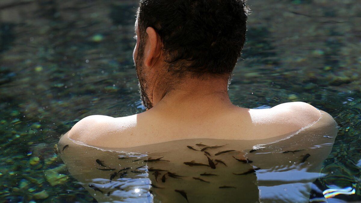 Yaklaşık 37 derece sıcaklıktaki suda yaşayan binlerce küçük balık, sivilce ve yara kabuklarını yiyerek deriyle kaplıca suyunun temasını artırıyor.