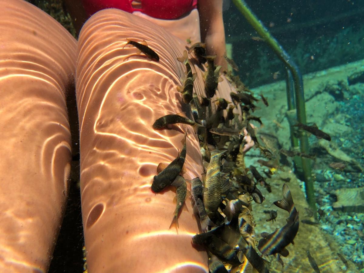 Özel havuzların olduğu merkezde vatandaşlar ayrıca içerisinde yine balıkların bulunduğu kaplıca ortasından geçen dereden de faydalanıyor.