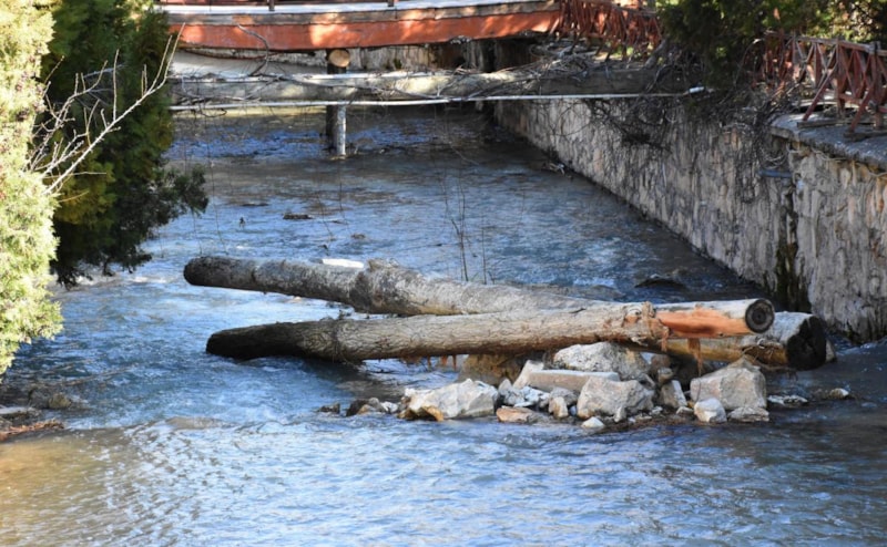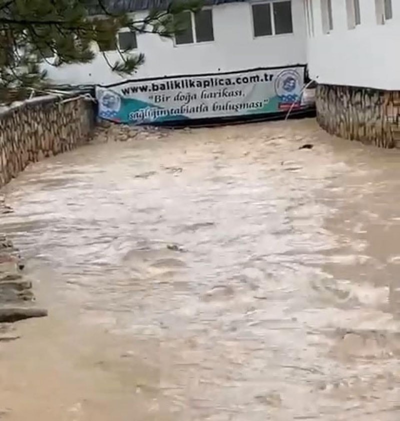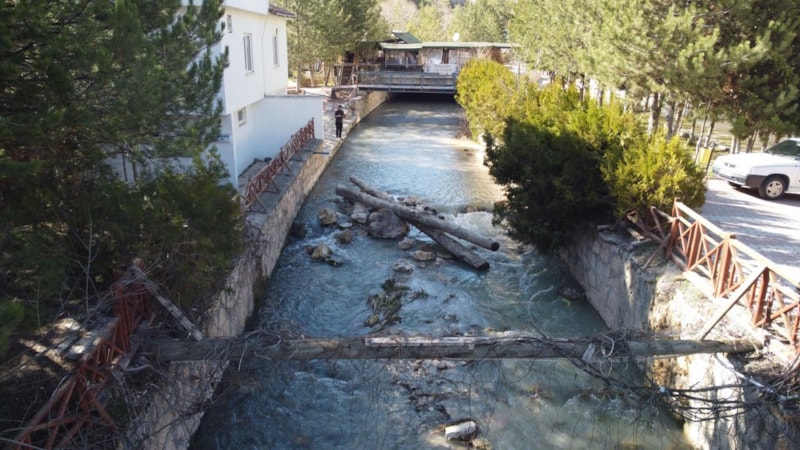 Sivas'ın Kangal ilçesinde bulunan ve sedef hastalığının dünyadaki tek doğal tedavi merkezi olduğu belirtilen Balıklı Kaplıca'nın ortasından geçen derede, bahar aylarında karların erimesi ve yağmur nedeniyle sel ve su taşkınları yaşanıyor.