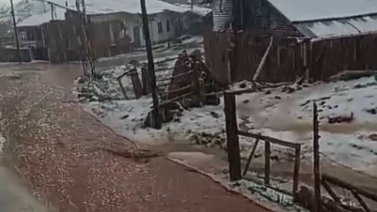Sivas'ta kent merkezine bağlı Yanalak Köyü, sağanak yağışın ardından doluya teslim oldu.