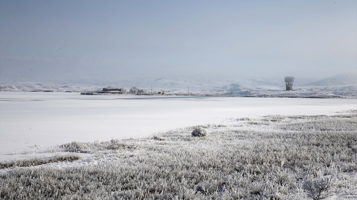 Hava sıcaklığının sıfırın altında 15 dereceye kadar düştüğü bölgede soğuk havanın etkisiyle Tödürge Gölü dondu.