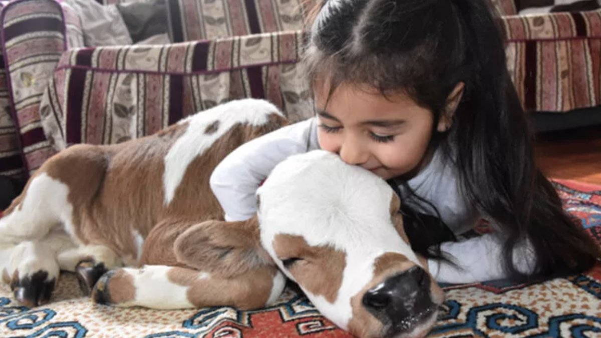 Sivas'ta yaşamaz denilen buzağıyı Hiranur'un sevgisi hayata bağladı - VİDEO