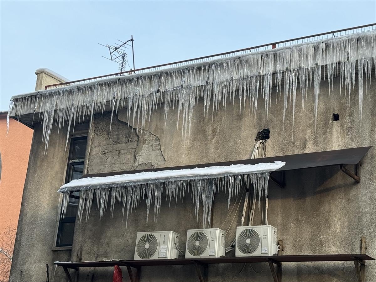 Ağaçların kırağıyla kaplandığı kentte, bazı ev ve işyerlerinin çatılarında buz sarkıtları oluştu.