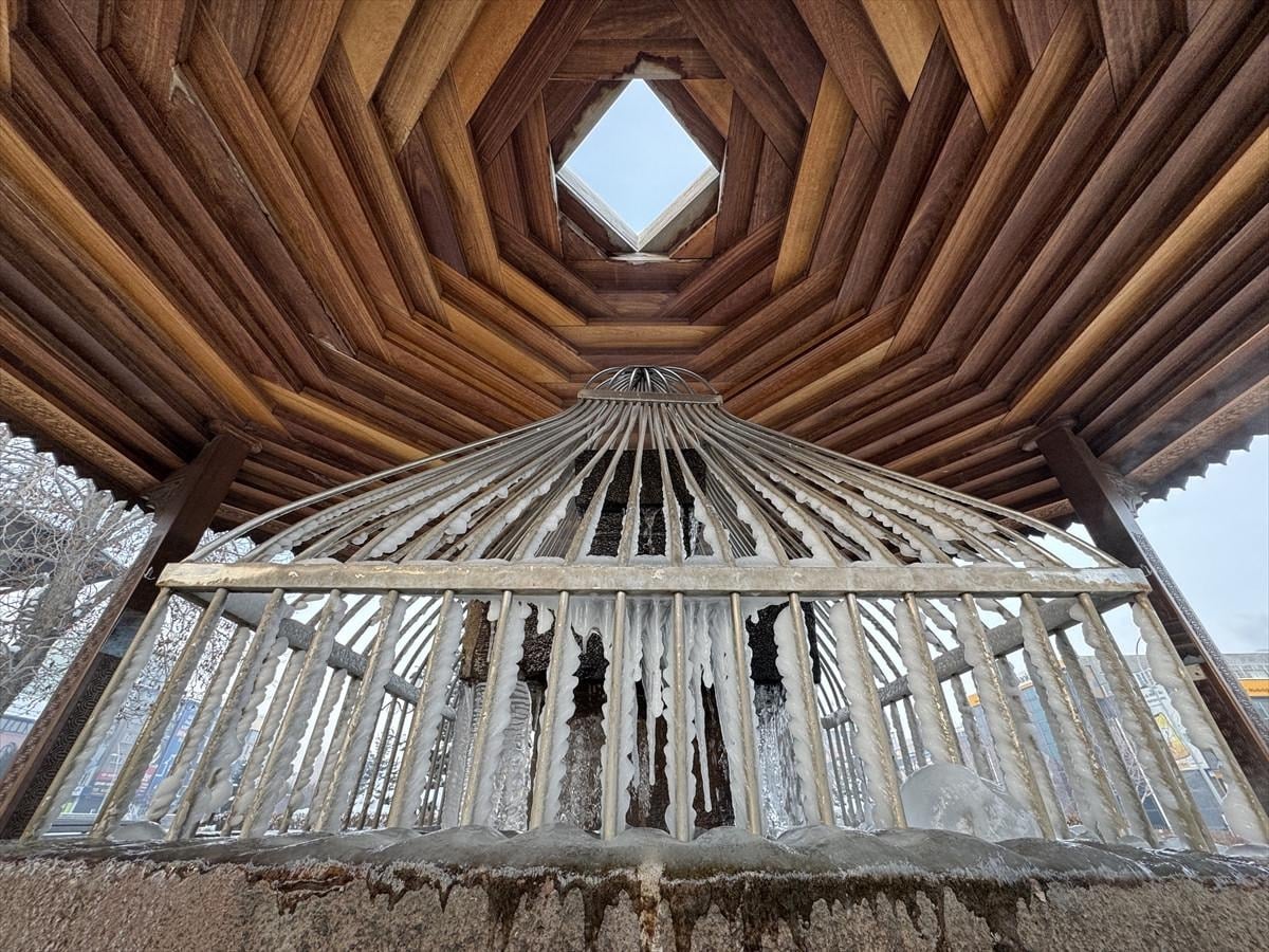 Kentteki bina ve iş yerlerinin çatılarında buz sarkıtları oluşurken, cami bahçelerindeki şadırvanlar dondu.