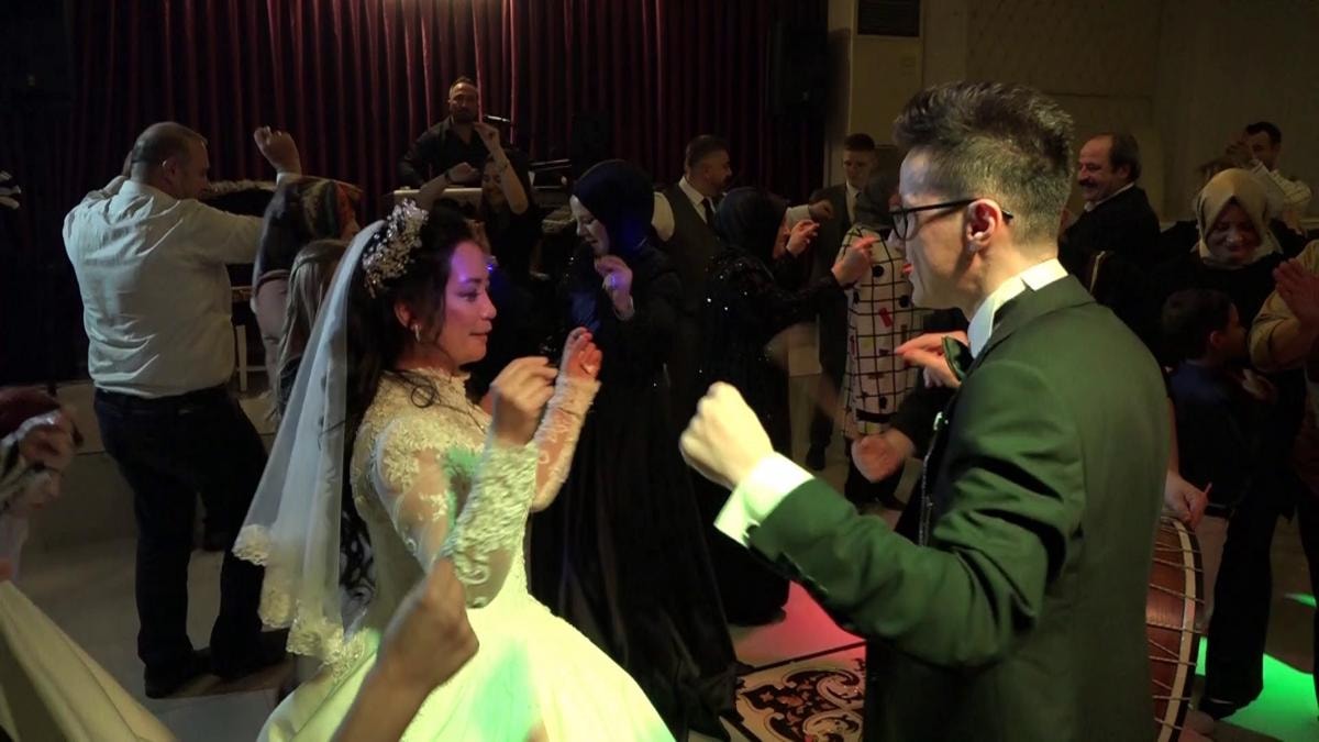 Filipinli gelin, gecede eşi Ayaz ile çifte telli oynadı. Düğün gecesi genç çifti yalnız bırakmayan akraba ve dostları gece boyunca destek oldu.