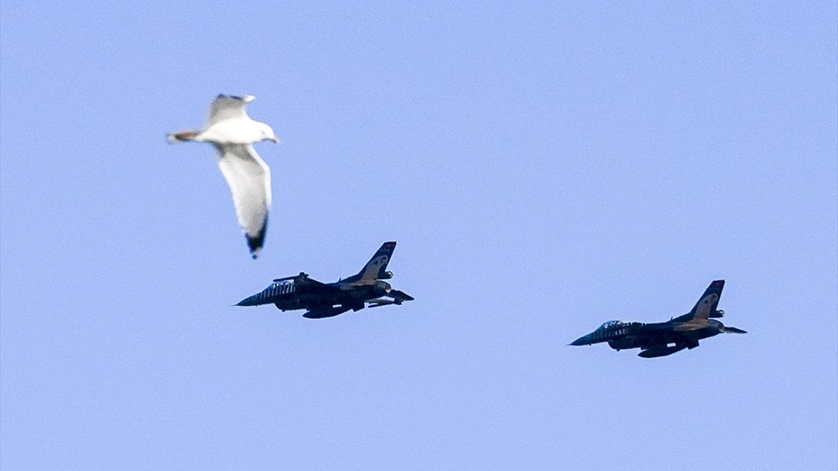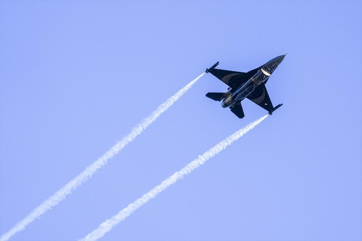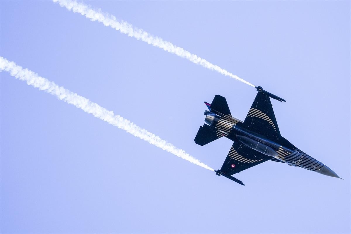 Isı güdümlü füzeleri şaşırtmak için kullanılan alev toplarının da (Flare) atıldığı selamlama uçuşu, yaklaşık 35 dakika sürdü.