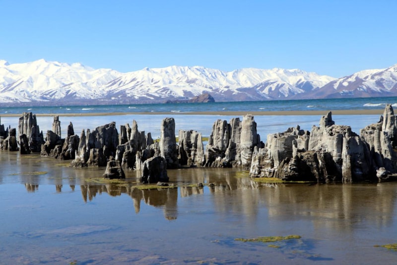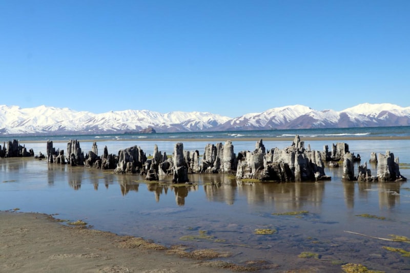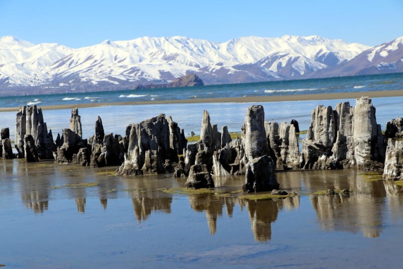 Van Gölü'nde daha önce su altında olan ve dalış yapılarak görülebilen mikrobiyalitler ise artık görünür hale geldi.