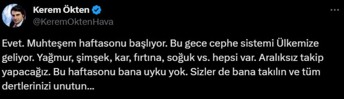Meteoroloji Uzmanı Kerem Ökten, sosyal medya hesabından paylaşım yaparak, hafta sonu için uyardı.