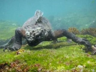 Galapagos Adaları açıklarında yiyecek arayan dev kertenkelenin sualtı videosu şaşakınlık yarattı. Kuyruğunu kullanarak yüzen kertenkelenin boyu yetişkin bir insanı buluyor.