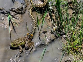 "Kurbağalar doğadaki sinek ve böcekler ile beslenirken, yılanlar da kurbağalar ile beslenir, yırtıcı kuşlar ise yılanlarla beslenir. Doğal denge bu besin zincirinin devamlılığı sürebilir. Bu da ekosistemin devamlılığı açısından çok önemlidir. Bu fotoğraflanan olayda bunun en güzel, bariz örneğidir. Söz konusu yılanlar, rahatsız edilince hızla hareket edip, gözden kaybolurlar. Tehlike hissettiklerinde pis kokulu gaz çıkarırlar ve ağızlarını açarak, ölü taklidi yaparlar.