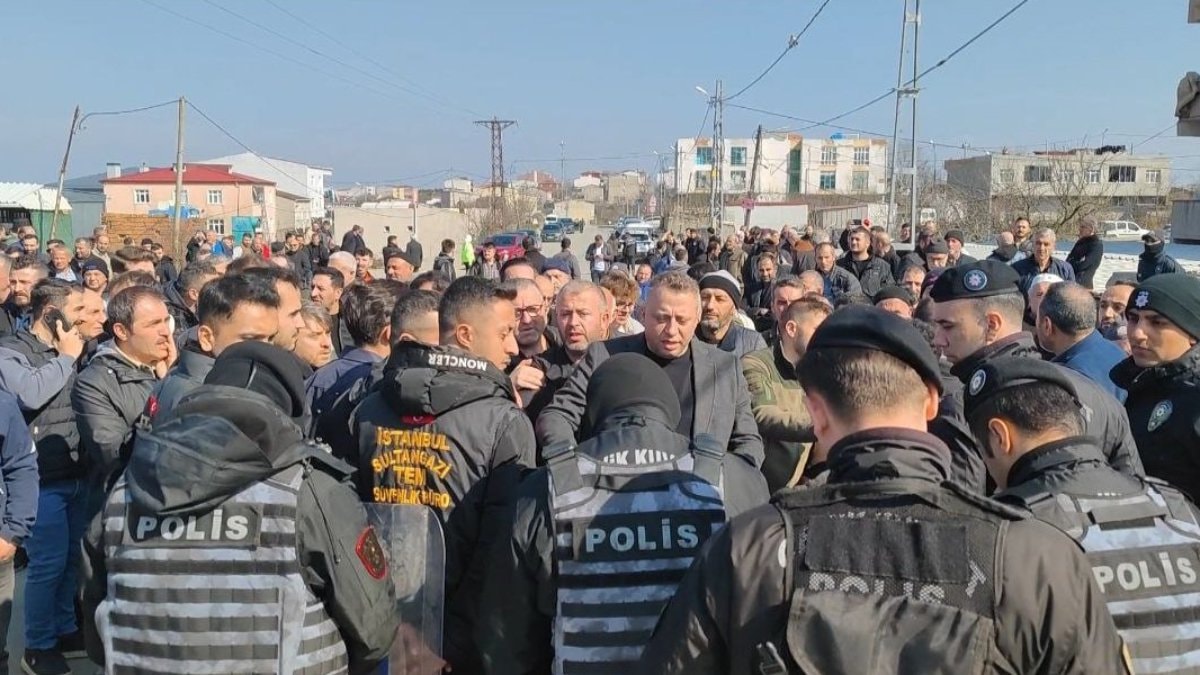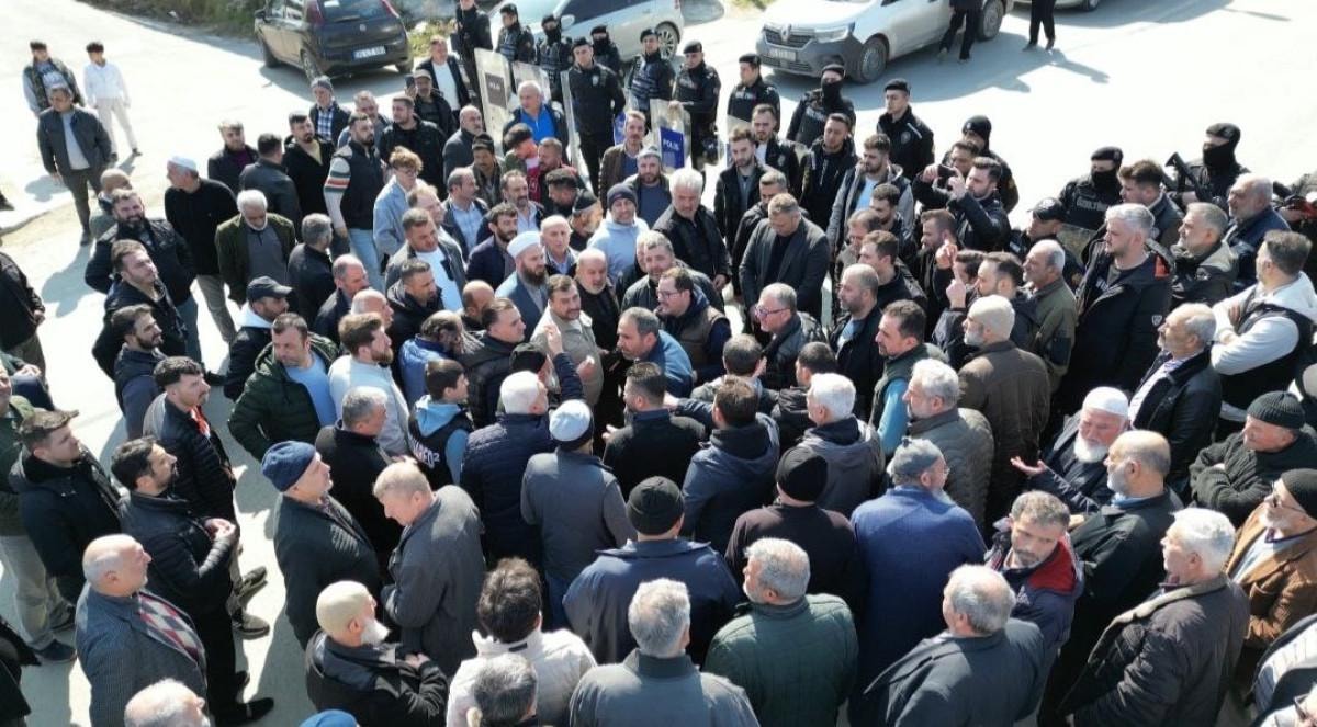 Toplanarak eylem yapan mahalle sakinleri "Yayla'da mezarlık istemiyoruz" şeklinde sloganlar atarak yürümek istedi.