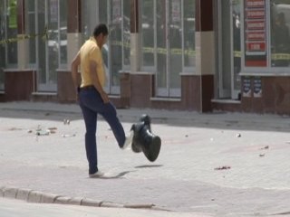 Polislerin tüm uyarılarına rağmen paketi inceleyen Bahri K, daha sonra uzaklaşarak eline bir taş aldı. Geri dönen Bahri K, elindeki taşı mankene fırlattı.