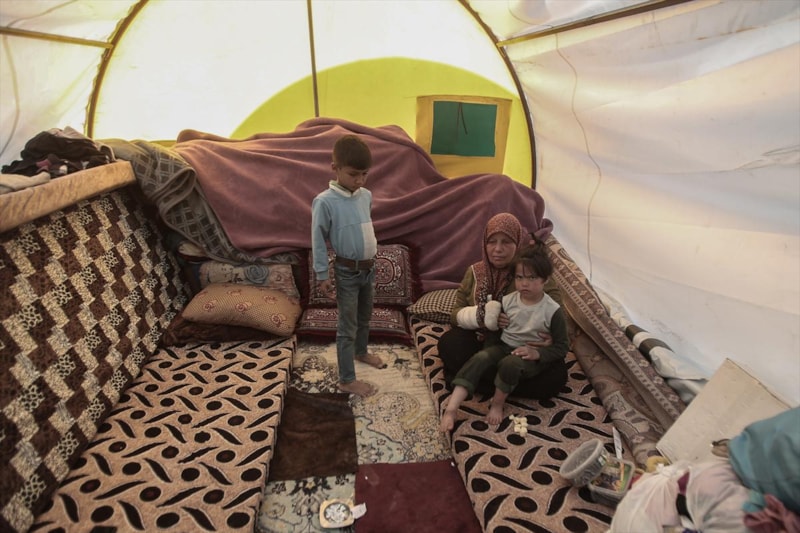 Asrın felaketinde ağır kayıplar veren Hedil'in babaannesi Hatice Hüseyin, kaldığı çadırda bir yandan torunun sağlık durumunun iyileşmesini beklerken diğer taraftan da ölen yakınlarının yasını tutuyor.