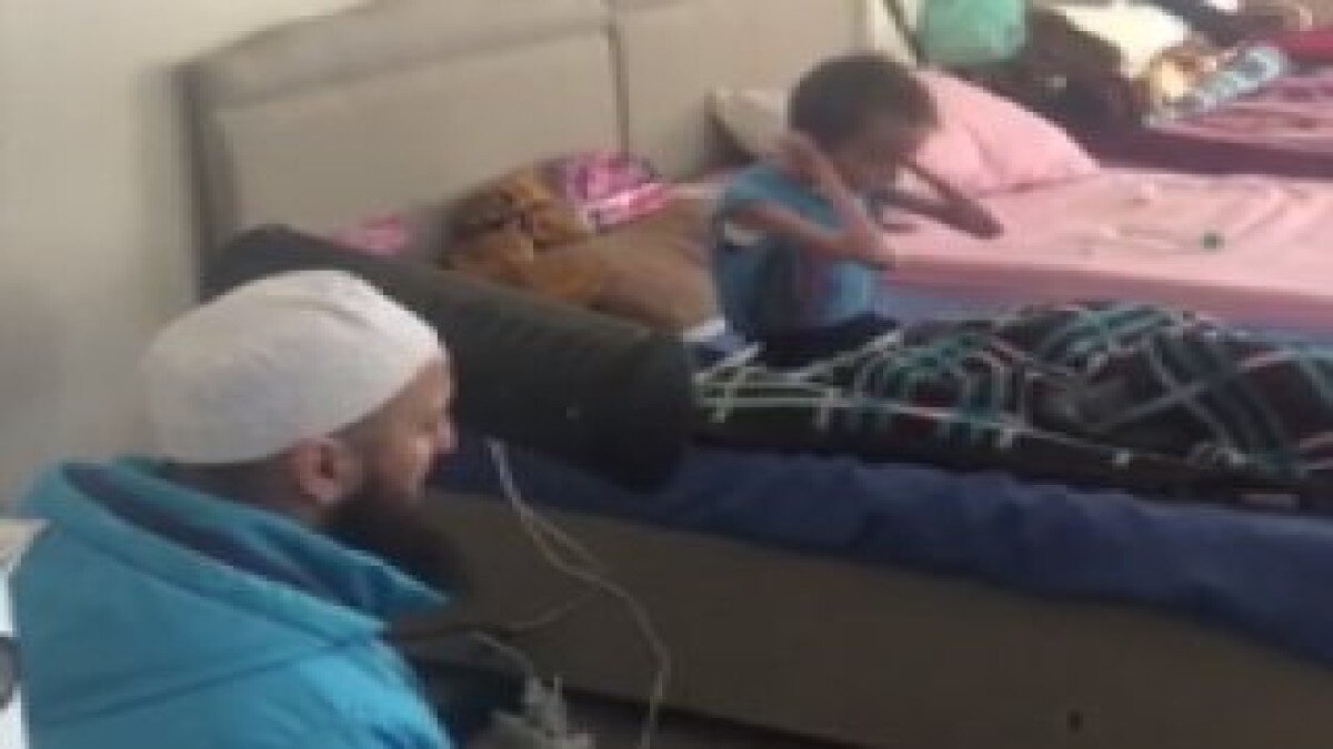 Görüntülerde, ellerini kaybeden ve vücudunda hala saldırılardan izler taşıyan minik çocuğun tilaveti ilgiyle dinleniyor.