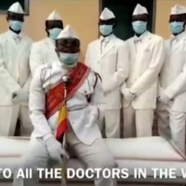 Sosyal medyada fenomen haline gelen Ganalı dansçı tabut taşıyıcıları, koronavirüs ile mücadele eden sağlık çalışanlarına teşekkür mesajı yayınladı.