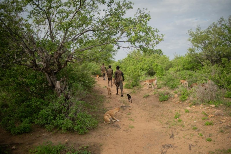 Avlanan gruplara çok sayıda köpek de eşlik ediyor. Avların bulunmasına köpekler de yardımcı oluyor. Kabilenin yaşadığı alanda bazı ağaç dallarında hayvanlara ait kafatasları bulunuyor.