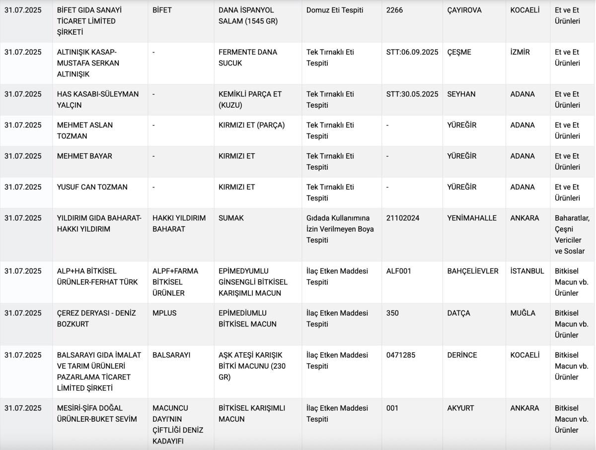 Bakanlık bu kapsamda; halk sağlığını tehlikeye atan, ürünlerin içeriğini değiştirerek sahte ürünlerle vurgun yapmaya çalışan işletmeleri uzun süredir belli periyotlarla ifşa ediyor.