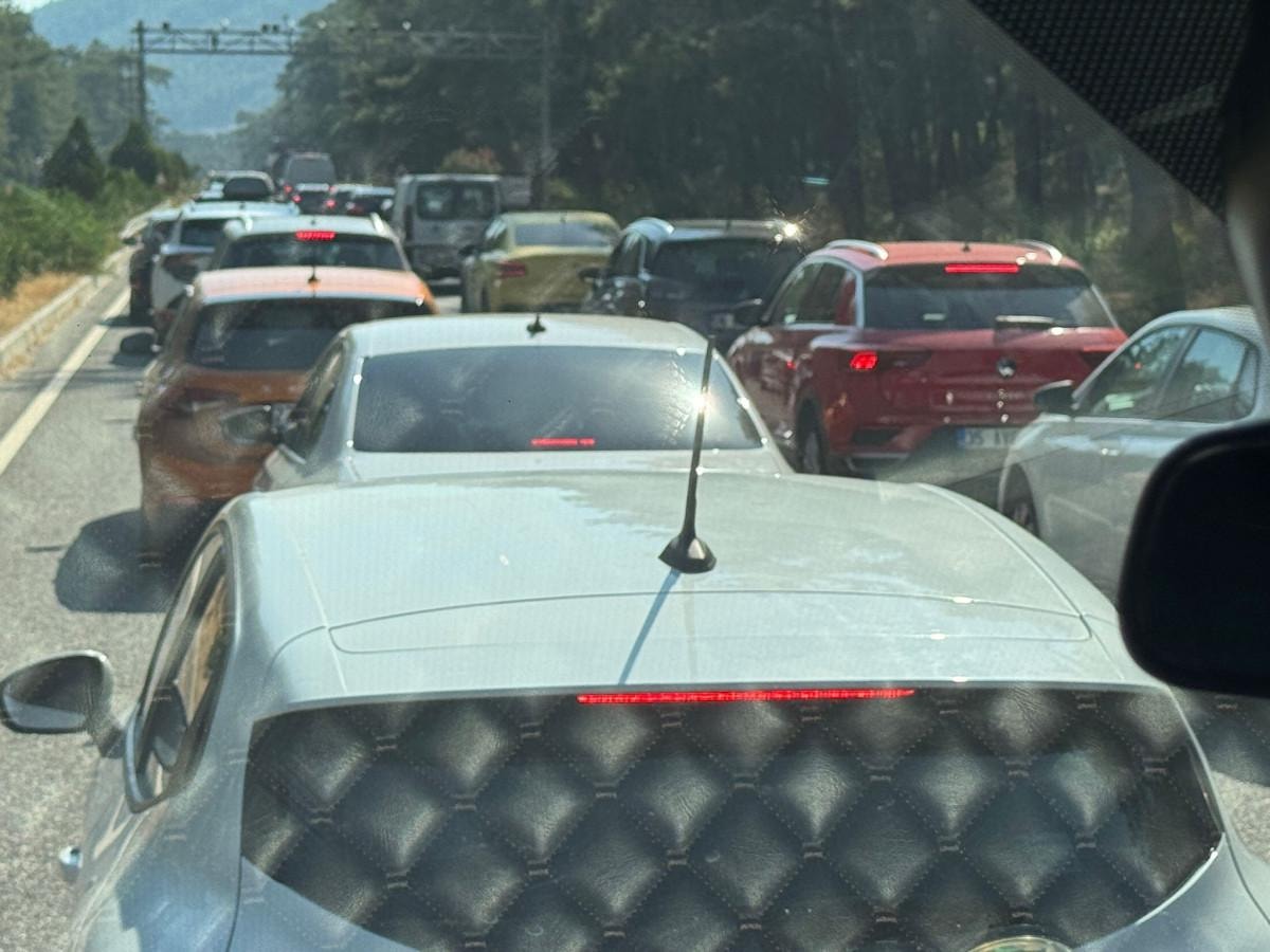 Marmaris Çetibeli mevkiinde bir kilometrelik araç kuyruğu oluştu.