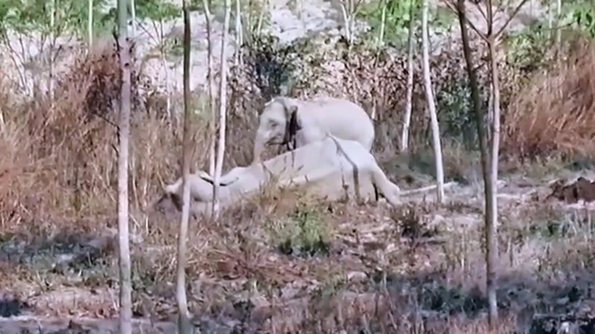 Tayland'ın Chanthaburi şehrinde yavru fil, yaralı annesini etraftakilerden korumaya çalıştı.