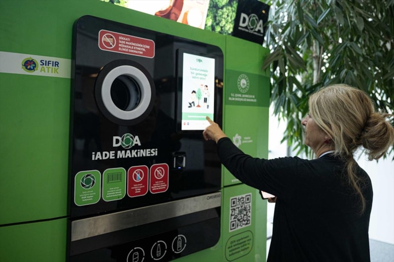 Cumhurbaşkanı Recep Tayyip Erdoğan'ın eşi Emine Erdoğan'ın himayesinde Çevre, Şehircilik ve İklim Değişikliği Bakanlığınca yürütülen Depozito Yönetim Sistemi Projesi kapsamında DOA logosu taşıyan plastik, cam ve alüminyum gibi malzemeler, iade makineleri aracılığıyla geri kazandırılıyor.